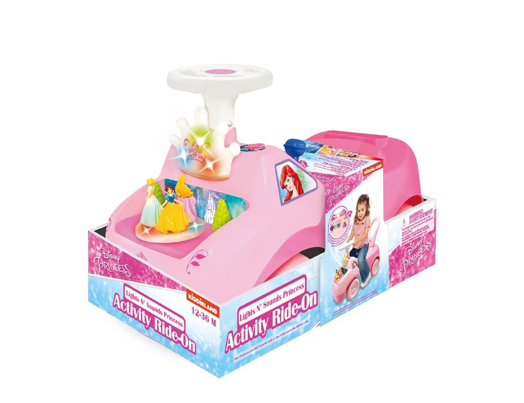 Яркая, красивая, изящная каталка-пушкар «Волшебная принцесса» – это отличный способ разнообразить привычный досуг вашего малыша. Море ярких эмоций и впечатлений обеспечено. Ведь какая эта огромная радость –  провести любимую прогулку по-новому. Каталка от известного бренда «Kiddieland» непременно понравится девочкам, они с удовольствием будут кататься на яркой машинке, отталкиваясь ножками от пола. Каталка декорирована яркими красочными наклейками с изображением любимых диснеевских принцесс. Звуковые и световые эффекты сделают игру еще более интересной и захватывающей.
