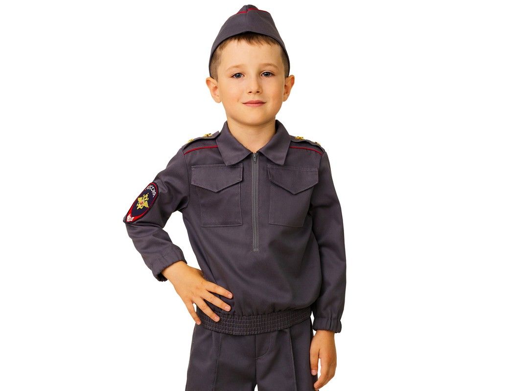 Полице йский всегда на страже порядка, гроза бандитов и хулиганов, надежный и ответственный профессионал. Стать таким героем в будущем желает практически каждый мальчишка, а примерить образ полицейского на себя можно уже и сейчас при помощи этого костюма. Брюки со стрелками, куртка с погонами выполнены из качественного текстиля. Добавить натуралистичности образу поможет пилотка в тон костюму.